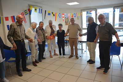 Sous le déploiement d’un grand pavois courant de fenêtre en fenêtre, chacune des personnes présentes -une vingtaine- a bien voulu commencer par se présenter. Des chansons et cantiques ont émaillé des flashes sur le parcours de Gaston et de Claude. Couronnant ce programme, un texte évangile a permis que la parole circule jusqu’à la prière partagée dans la spontanéité du moment.