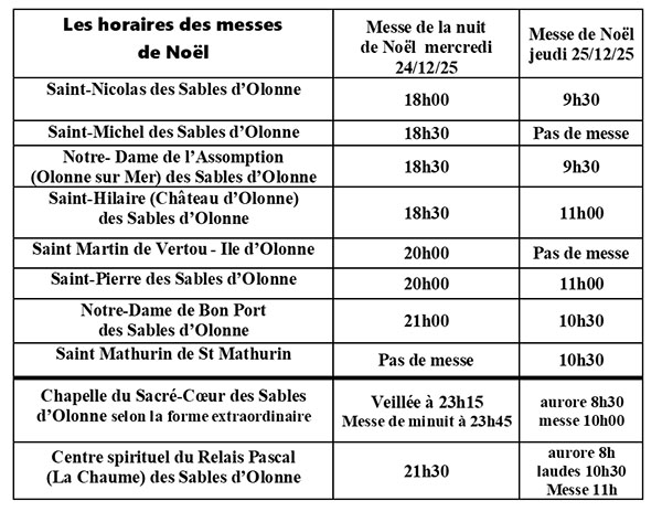 ♦ Église Saint-Martin de Vertou Ile d’Olonne : le samedi à 18H30 (messe dominicale anticipée),